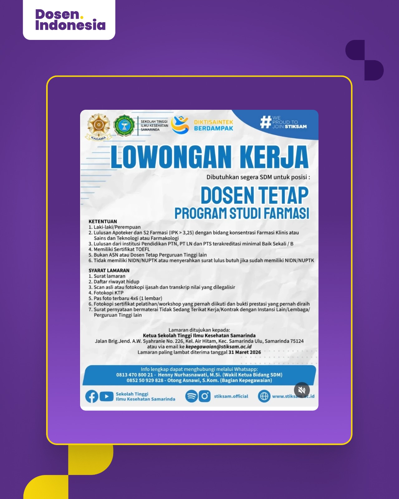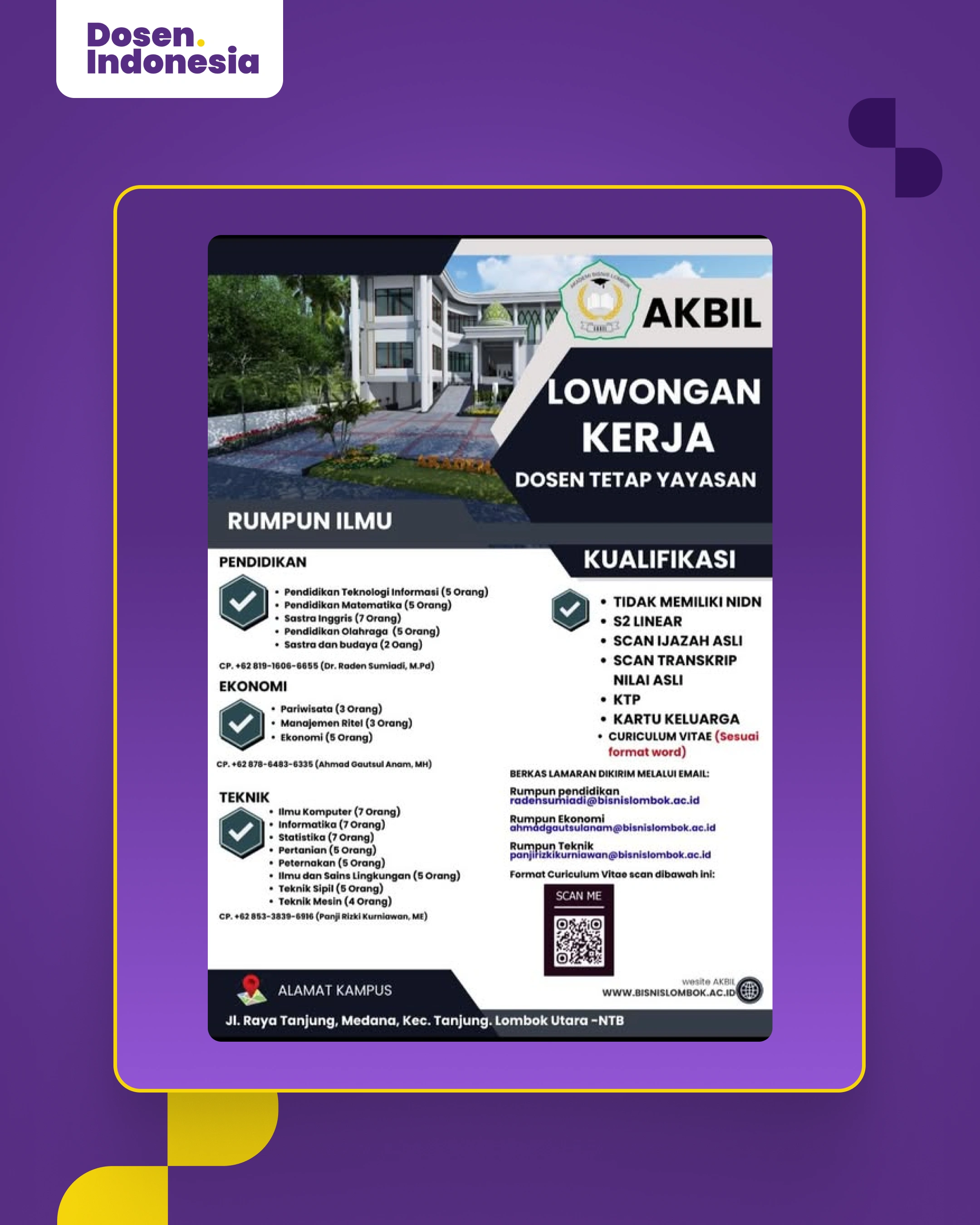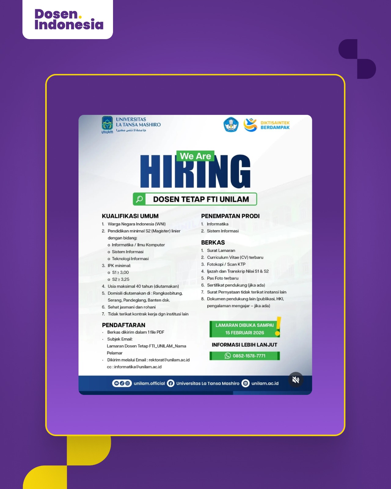 Lowongan Kerja Dosen & Tendik