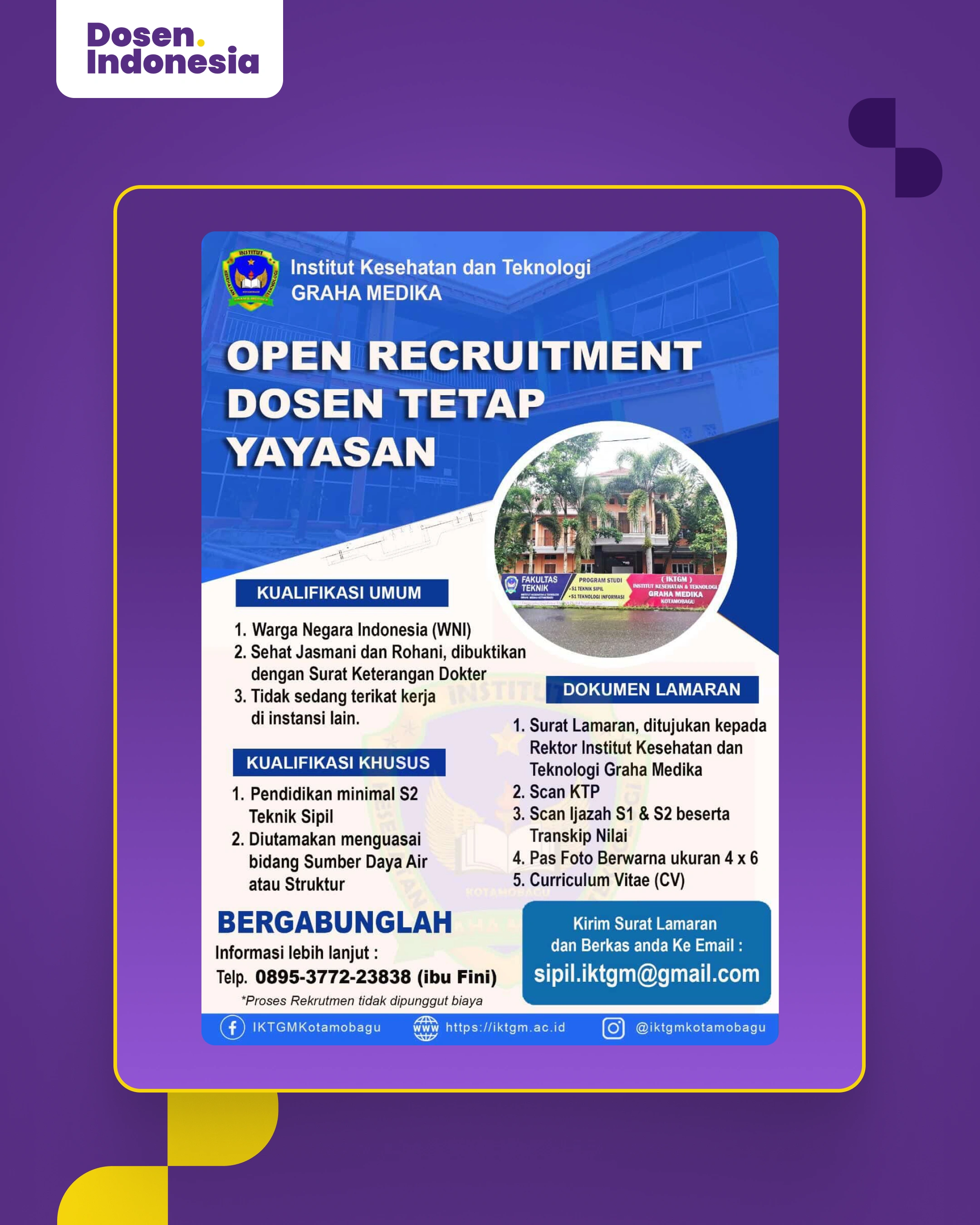 Open Recruitment Dosen Tetap Yayasan Teknik Sipil