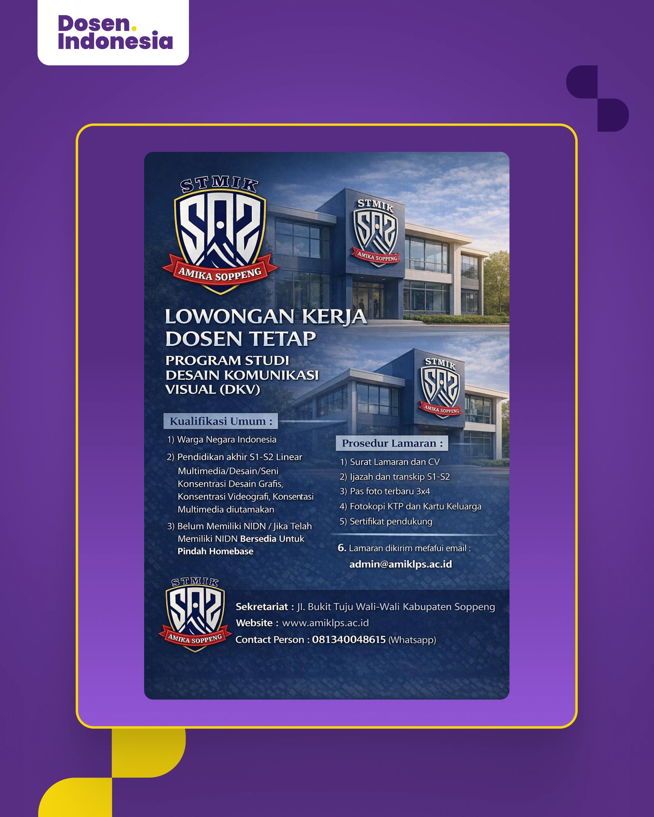 Lowongan Dosen Tetap DKV STMIK Amika Soppeng