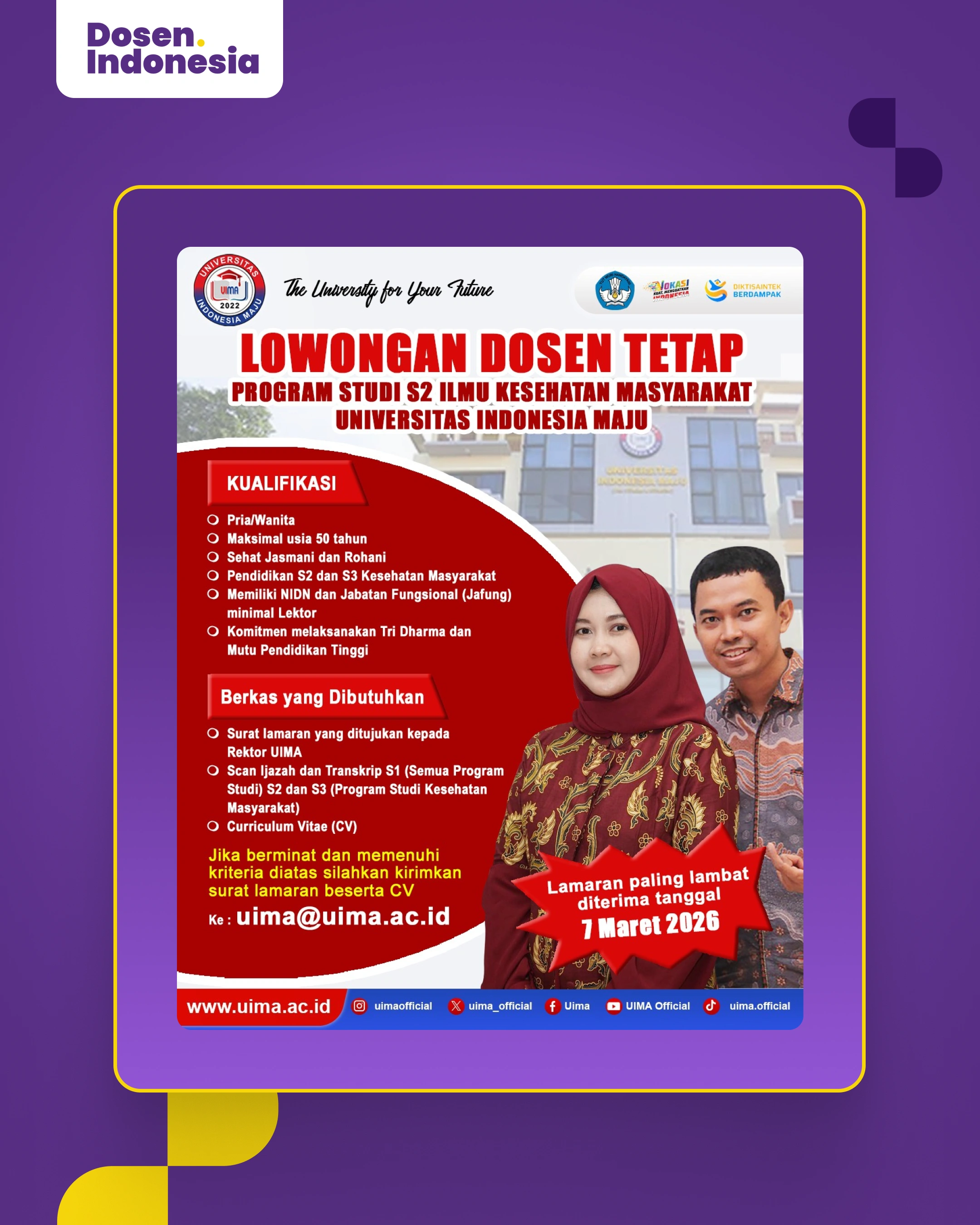 Lowongan Dosen Tetap S2 Ilmu Kesehatan Masyarakat