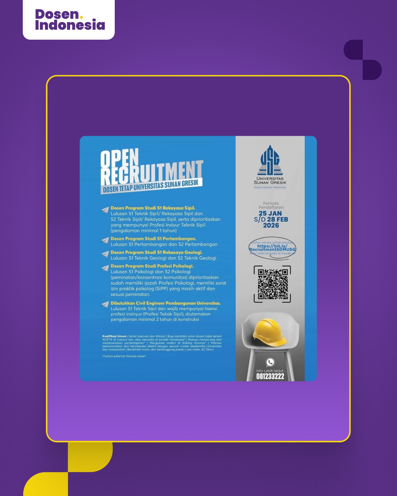 Open Recruitment Dosen Tetap Universitas Sunan Gresik